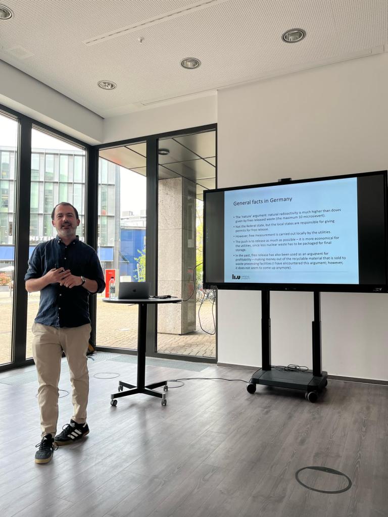 As part of their stay, they presented parts of their ongoing research in the Nuclear Natures project. Sergiu Novac held a presentation on the production and circulation of cleared waste from nuclear decommissioning, titled ‘Free Waste, or Free from Waste: Controversies around the free measurement and release of very low-level nuclear waste from decommissioning in Germany’. Hannah Klaubert presented her work on the notion of a greenfield in nuclear decommissioning, with the title: ‘Dreams of Green Fields: A Cultural Analysis of the Term “grüne Wiese” in Nuclear Decommissioning in Germany’. Additionally, they actively participated in the Nuclear Memory Week, and the internal research colloquia of BASE.