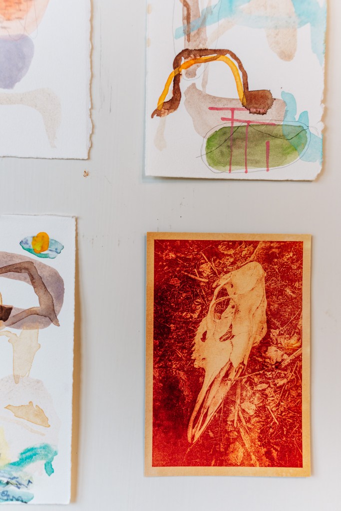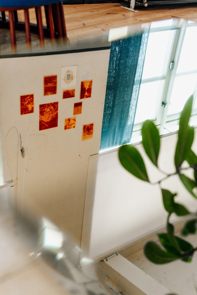 On 7–11 October 2024, the Nuclear Natures project organised a PhD autumn school and conference on the theme of Nuclear Natures in Norrköping, Sweden. While we are working on bringing you a full report of the events, we want to share some images and a news article about an artistic installation that was exhibited as part of the conference at Arbetets museum on 9–11 October. Gentle Reminders, as the exhibit was called, was an installation with anthotype prints, drawings, paintings, and mineral and rock samples. An account of the art show as well as the intersection of art and interdisciplinary nuclear culture research is available in Swedish and English.